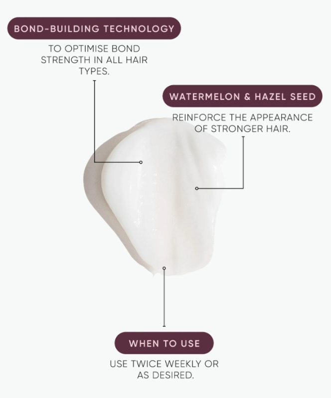 Our Signature Formula: An advanced bond-building treatment with Watermelon Seed and Hazel Seed to repair hair from the inside out. Enriched with our Signature Peptides and Ectoin Barrier Booster that assist to repair and strengthen, nurturing the scalp microbiome for your healthiest hair.