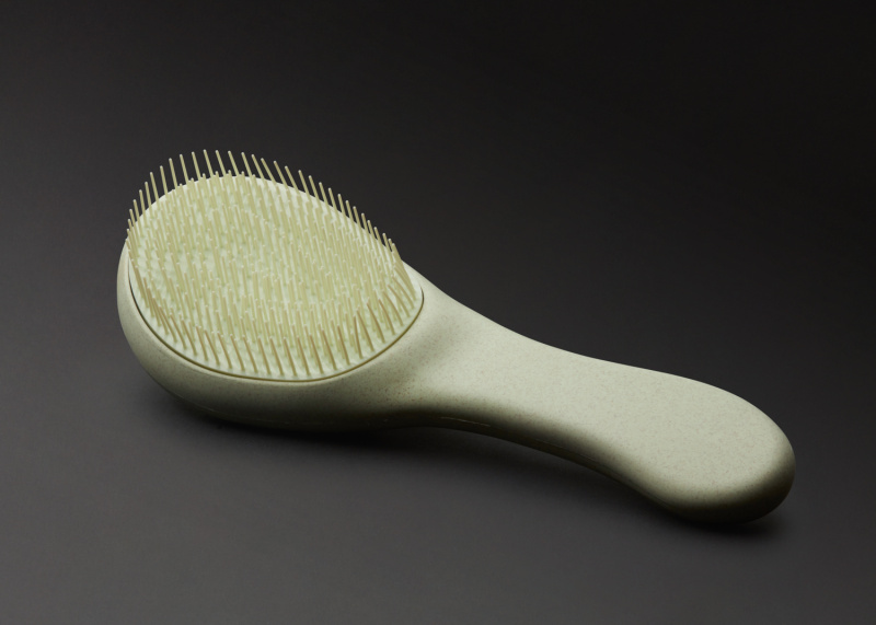 Made from 100% compressed, biodegradable natural plant starch - Maize & Casava - the curved, moulded bristles and cushioned paddle gently massage the scalp, preventing damage to the hair caused by breakage.