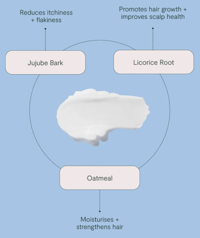 Jujube Bark, Licorice Root & Oatmeal assist to smooth & soften hair whilst calming sensitive scalps. Restores scalp vitality & assists to support the hair’s natural growth cycle for optimal scalp & hair health.